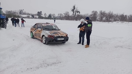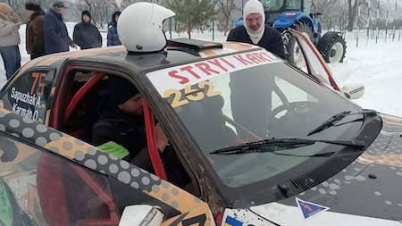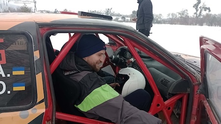Андрій Ігорович провів інструктаж з техніки безпеки, контрольний огляд автомобіля перед виїздом, ознайомив з індивідуальними засобами безпеки, з особливостями керування спортивним транспортним засобом в умовах недостатнього зчеплення з поверхнею дороги і продемонстрував практичні уміння водіння автомобіля.